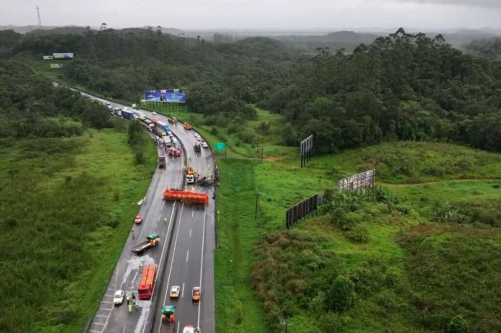 O acidente deixou a rodovia completamente bloqueada e causou longos congestionamentos na região de Joinville.