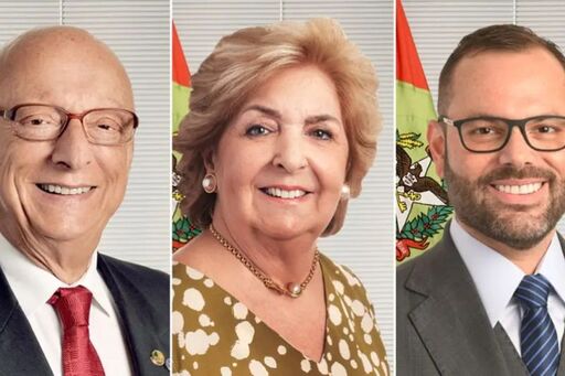 Foto divulgação - Esperidião Amin (à esq.) e Ivete da Silveira (ao centro) têm mandato chegando ao fim neste ano, enquanto Jorge Seif (à dir.) tem mandato até 2031