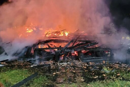 | Foto: 5º BBM - Incêndio destrói casa de madeira em Otacílio Costa
