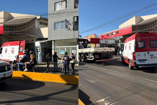 Uma motociclista ficou ferida após se envolver em uma colisão com um caminhão no bairro Jardim América, em Chapecó. A vítima recebeu atendimento e foi encaminhada para a Unidade de Pronto Atendimento (UPA).