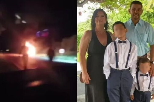 Com o impacto, o tanque de combustível do carro da família explodiu e pegou fogo