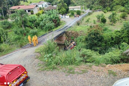 Foto: CBMSC/ Divulgação - Motorista perde o controle e cai de ponte após ataque de abelhas em Rio do Sul