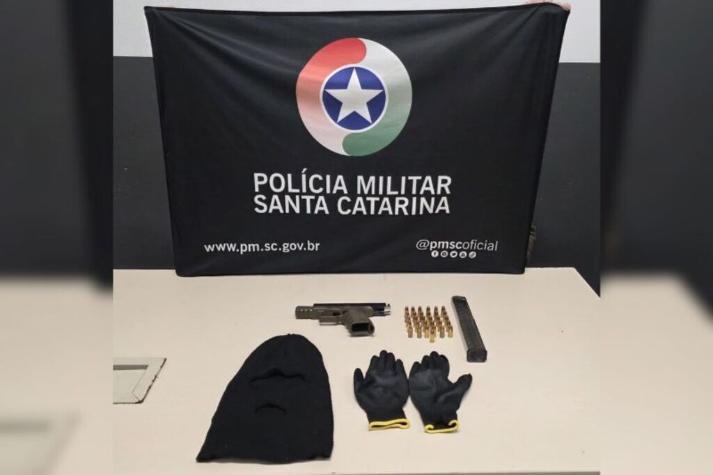 Foto: PMSC Divulgação - Polícia apreende pistola e veículo após troca de tiros em cidade catarinense