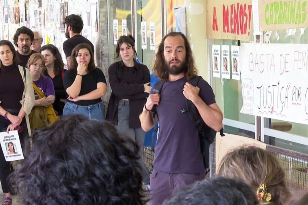 Foto: Reprodução/NDTV - Marido de Catarina Kasten participou de ato na UFSC em homenagem à professora morta em trilha