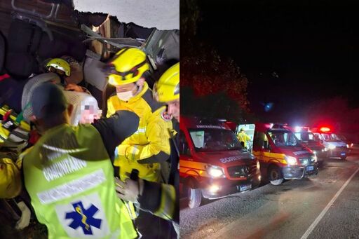 Foto: Divulgação/15º Batalhão de Bombeiros Militar - Ônibus despenca em ribanceira, mata três pessoas e deixa 13 feridas na BR-470 em SC