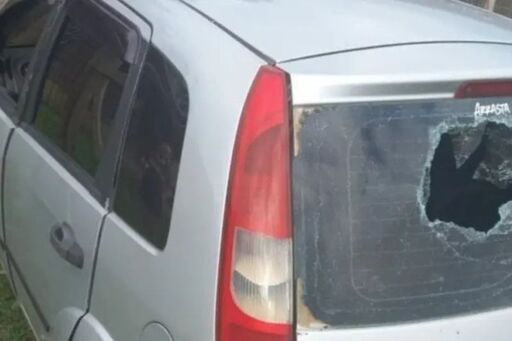 Vidro traseiro do veículo da vítima ficou danificado após novo ataque do ex-companheiro